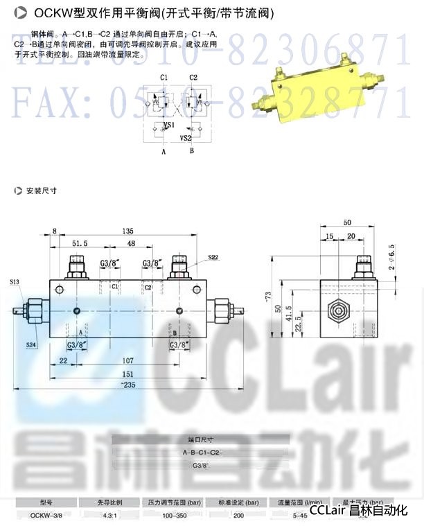 OCKW-3/8, 雙作用平衡閥(開式平衡/帶節(jié)流閥)