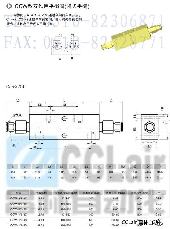 CCW-3/2-27,CCW-3/8-43,CCW-3/8-88,CCW-1/2-27,雙作用平衡閥(閉式平衡)