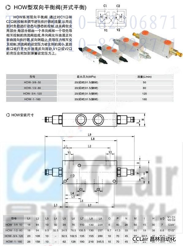 HOW-3/8-50,HOW-1/2-80,HOW-3/4-120,HOW-1-160,雙向平衡閥(開式平衡)