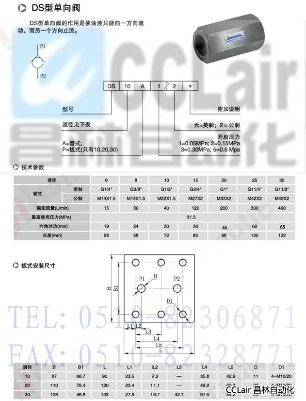 DS6A,DS8A,DS10A,DS15A,DS20A,DS25A,DS30A,管式單向閥