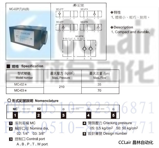 MC-02A,MC-02B,MC-02P,MC-02T,MC-02W,積層式止逆閥