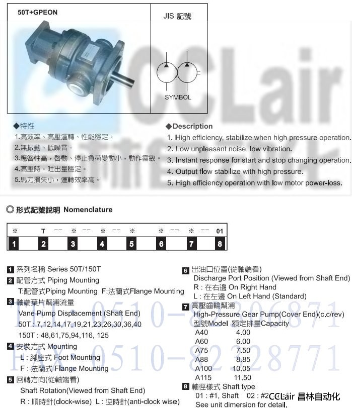 50TT-7-L,50TT-12-L,50TT-14-L,50TT-17-L,50TT-19-L,50TT-21-L,定量高低壓組合泵 |