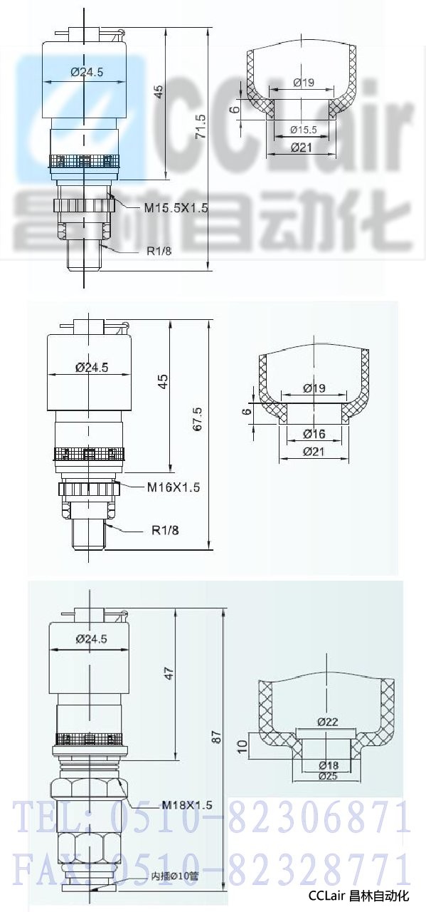 •本產品安裝在自動排水器、空氣過濾器、空氣過濾減壓閥的水杯底部,能自動排放積聚在水杯中的冷凝水