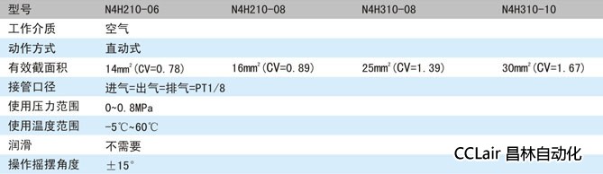 N4H系列手板閥用于工作溫度-5℃~60℃、免潤(rùn)滑、介質(zhì)為經(jīng)過濾、干燥后的清潔空氣、工作壓力