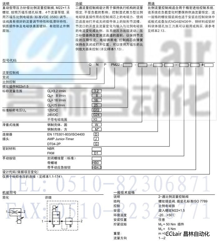 QNPPM22,插裝式比例 2-通流量控制閥(滑套式線圈)
