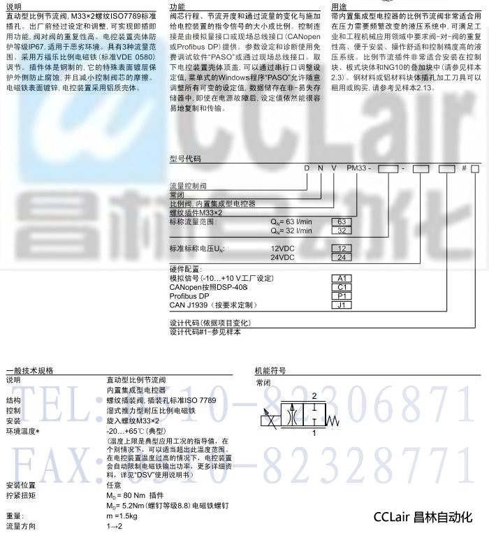 DNVPM33,插裝式比例節(jié)流閥 (內(nèi)置集成型電控器)