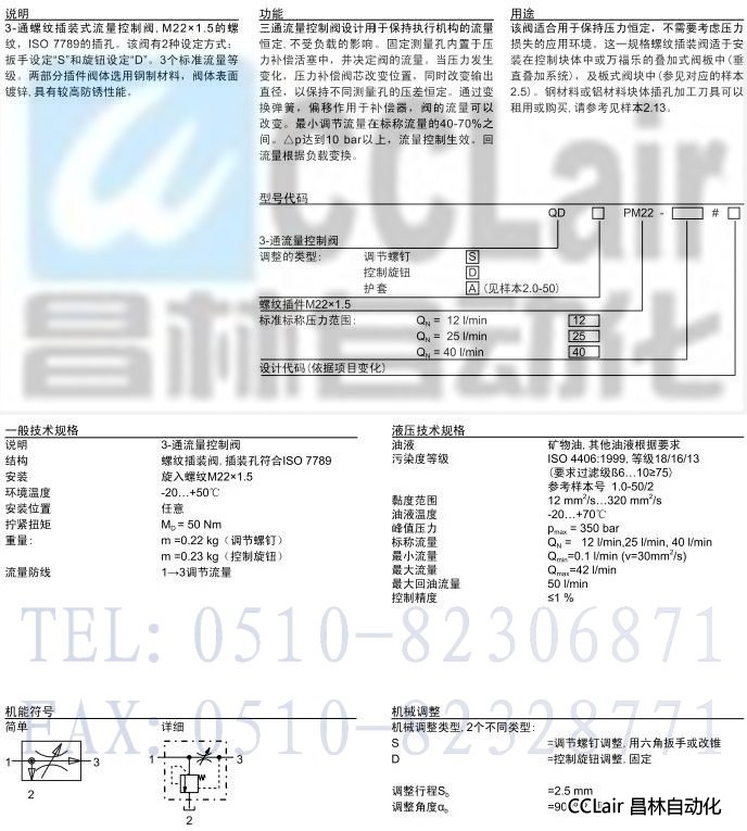 QD.PM22,QDSPM22,QDDPM22,3-通插裝式流量控制閥