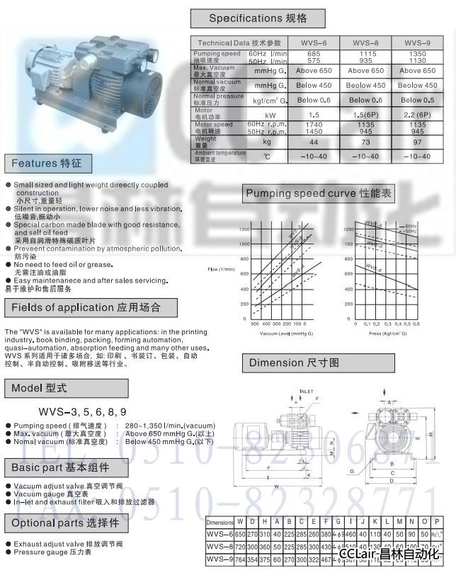 WVS-6,WVS-8,WVS-9,干式旋片真空泵