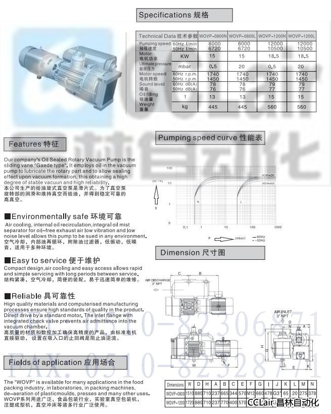 WOVP-0800N,WOVP-0800L,WOVP-1200N,WOVP-1200L,給油旋片式真空泵