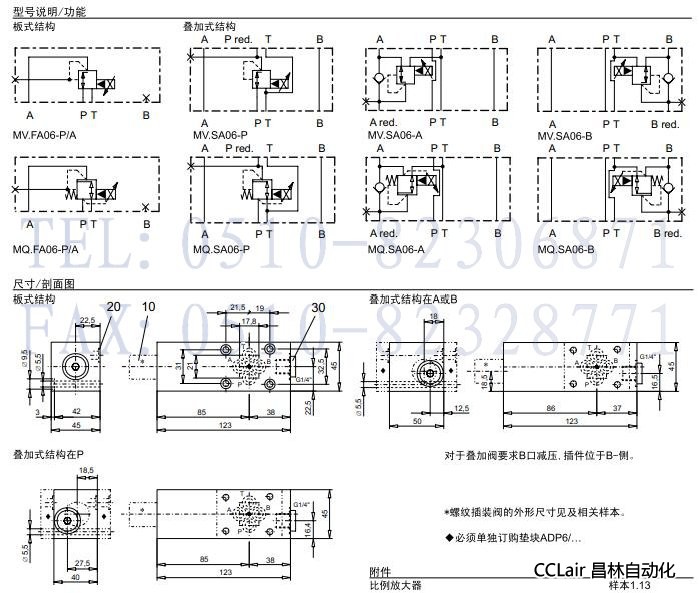 MVPF0A06-P/A,MVPSA06-P,MVPSA06-A,MVPSA06-B,板式和疊加式比例減壓閥