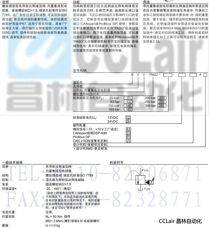 BVVPM22,先導式比例壓力溢流插裝閥(內置集成型電控器)