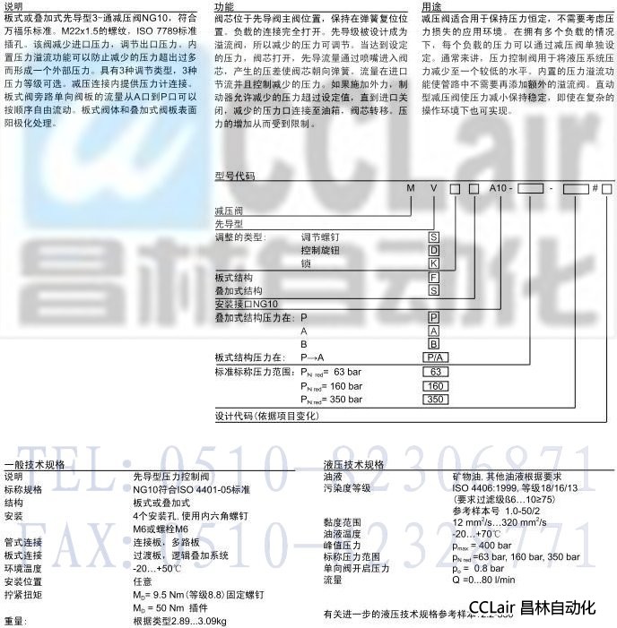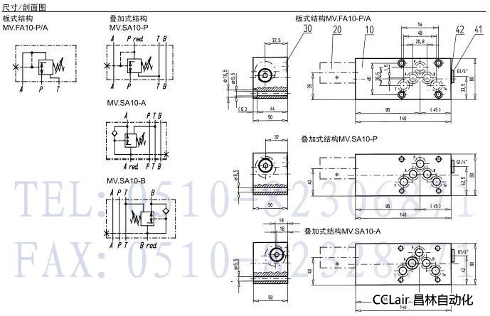 MV.FA10-P/A,MV.SA10-P,MV.SA10-A,MV.SA10-B,先導式減壓閥板式和疊加式結構