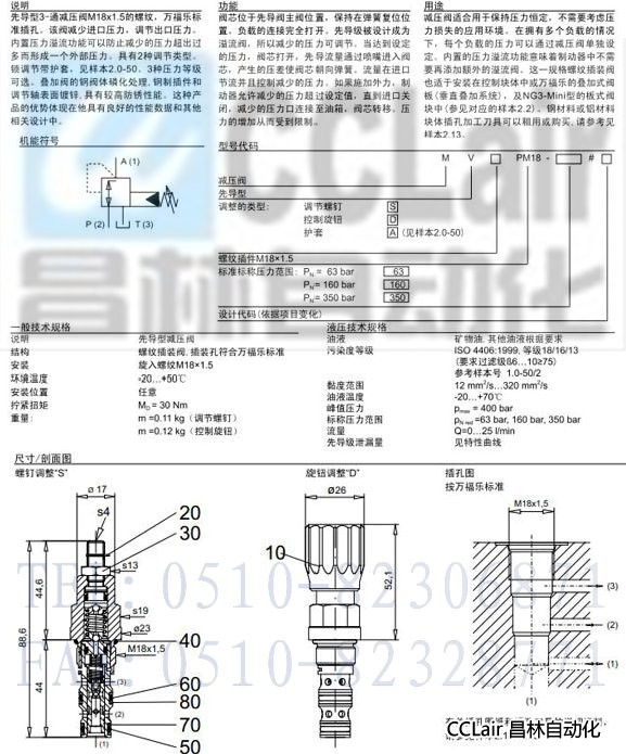 MVSPM18-160,MVDPM18-63,先導式減壓插裝閥