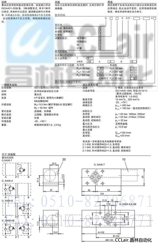 G.SA10-T,G.SA10-A,G.SA10-B,G.SA10-AB,先導(dǎo)式/直動式背壓閥疊加式結(jié)構(gòu)