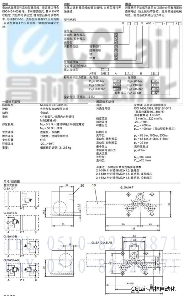 G.SA06-T,G.SA06-A,G.SA06-B,G.SA06-AB,先導式/直動式背壓閥疊加式結構