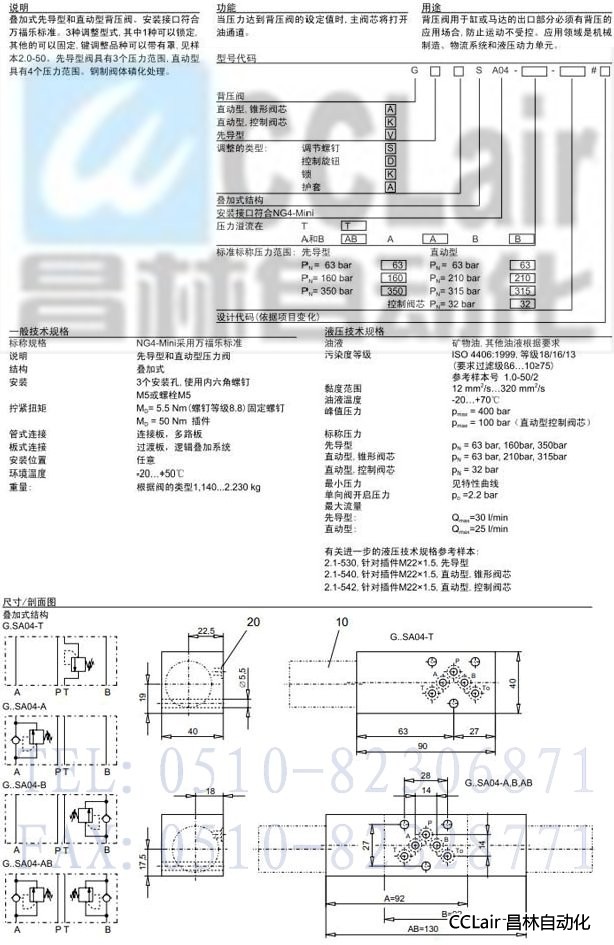 G.SA04-T,G.SA04-A,G.SA04-B,G.SA04-AB,先導式/直動式背壓閥疊加式結(jié)構(gòu)