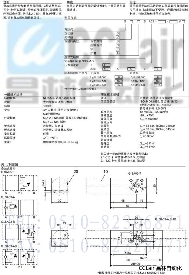 G.SA03-T,G.SA03-A,G.SA03-B,G.SA03-AB,先導(dǎo)式/直動式背壓閥疊加式結(jié)構(gòu) |