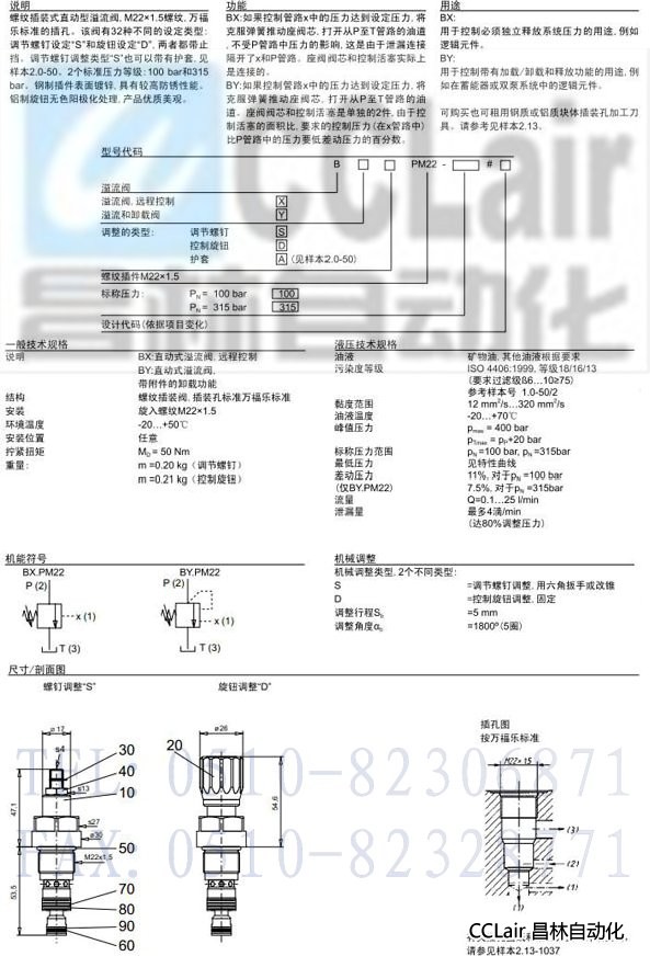 BXSPM22-100,BYDPM22-315,直動式壓力溢流插裝閥