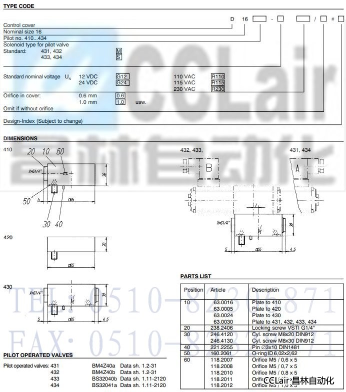D16431M,D16433S,帶檢驗功能的2位2通插裝閥
