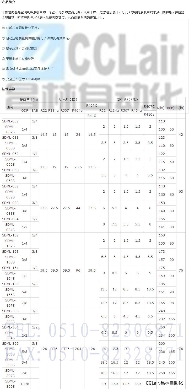 SDML-032,SDML-032S,SDML-052,SDML-052S,顆粒芯干燥過濾器