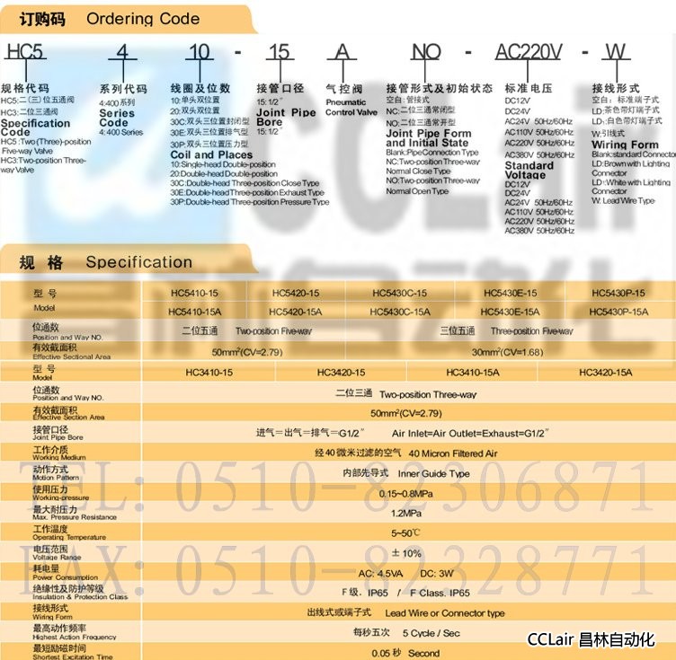 HC5410-15A,HC5420-15A,HC5430C-15A,HC5430E-15A,HC5430P-15A,氣控閥