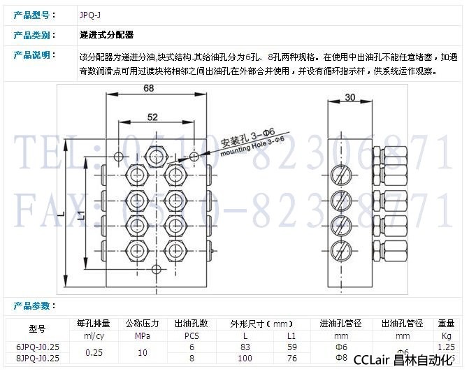 6JPQ-J0.25,8JPQ-J0.25,遞進分配器