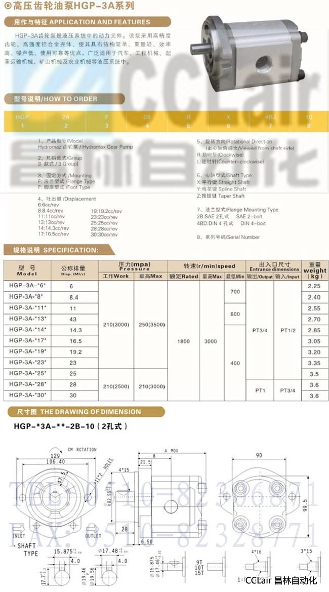 HGP-3A-F4R-2B,HGP3A-F6R-2B,HGP-3A-F8R-2B,高壓齒輪油泵