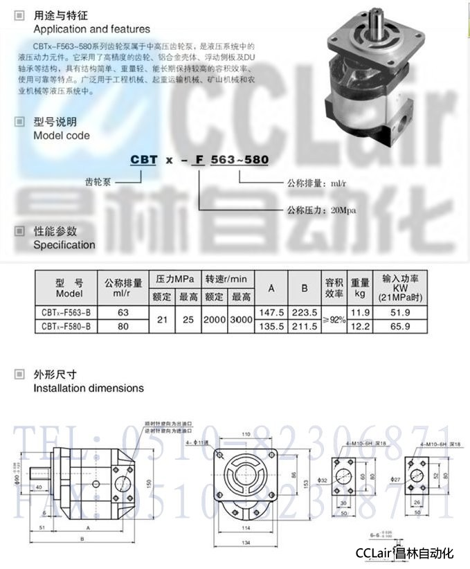 CBTx-F563-B,CBTx-F580-B,齒輪泵
