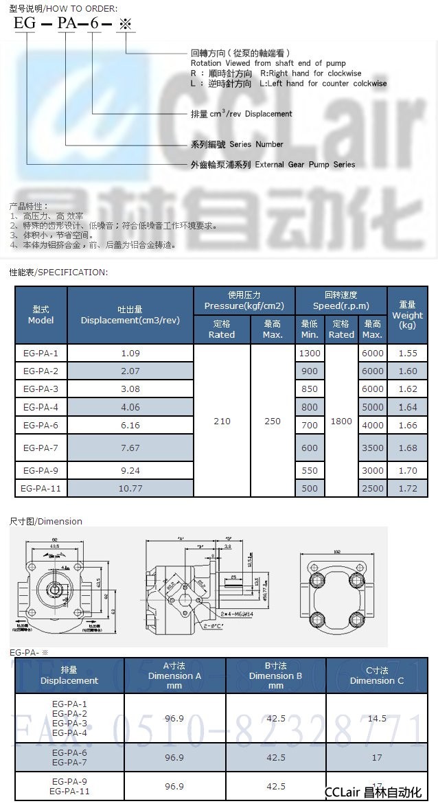 EG-PA-1,EG-PA-2,EG-PA-3,EG-PA-4,EG-PA-7,EG-PA-9,EG-PA-11,外齒輪泵浦