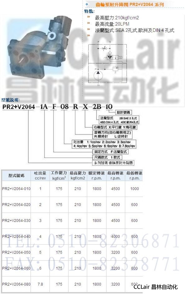 PR2+V2064-010,PR2+V2064-020,PR2+V2064-030,齒輪泵附調(diào)壓閥