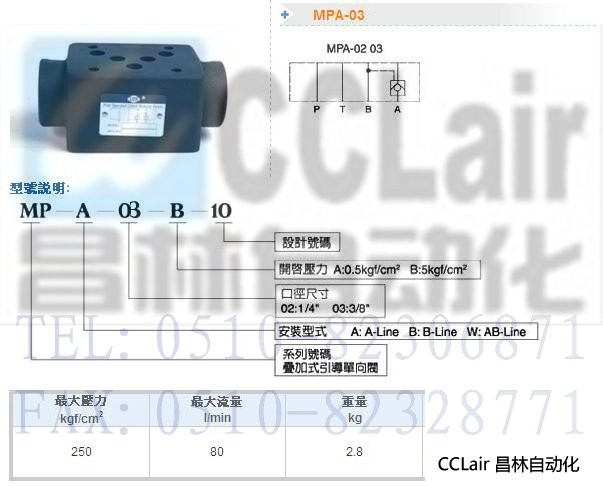 MPA-03-B-10,MPA-03-A-10,疊加式引導單向閥