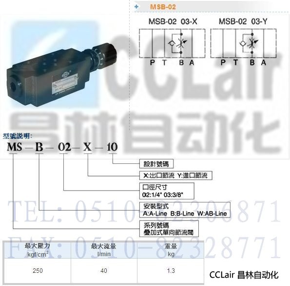 MSB-02-X-10,MSB-02-Y-10,疊加式單向節(jié)流閥