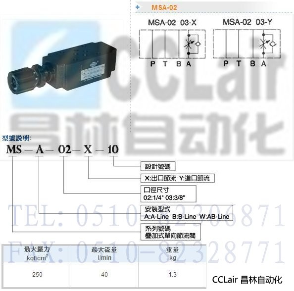 MSA-02-X-10,MSA-02-Y-10,疊加式單向節(jié)流閥