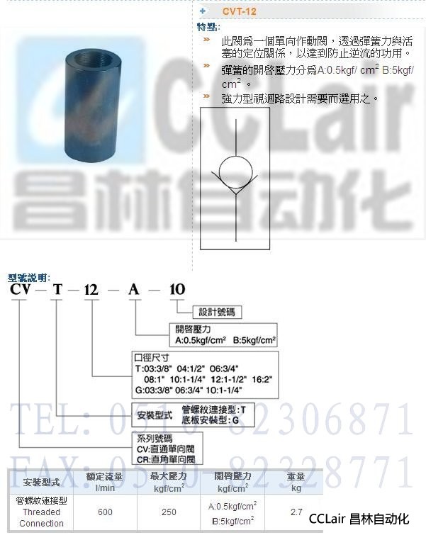 CVT-12-B-10,CVT-12-B-10,單向閥