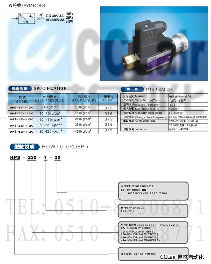 HPS-35-1-20,HPS-70-1-20,HPS-150-1-20,壓力繼電器