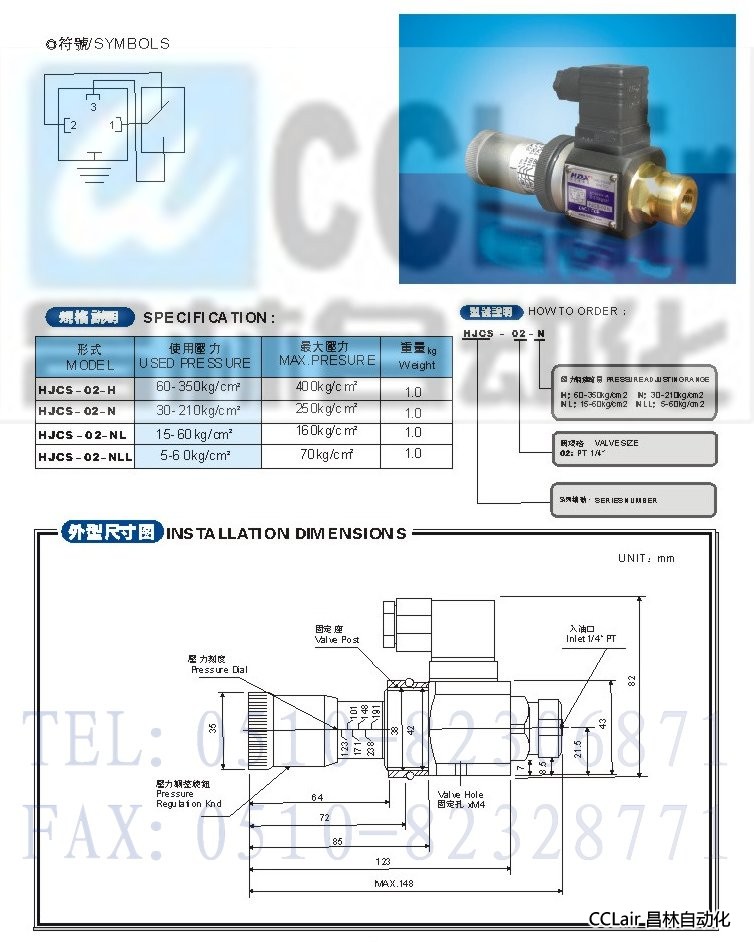 HJCS-02-H,HJCS-02-N,HJCS-02-NL,HJCS-02-NLL,壓力繼電器