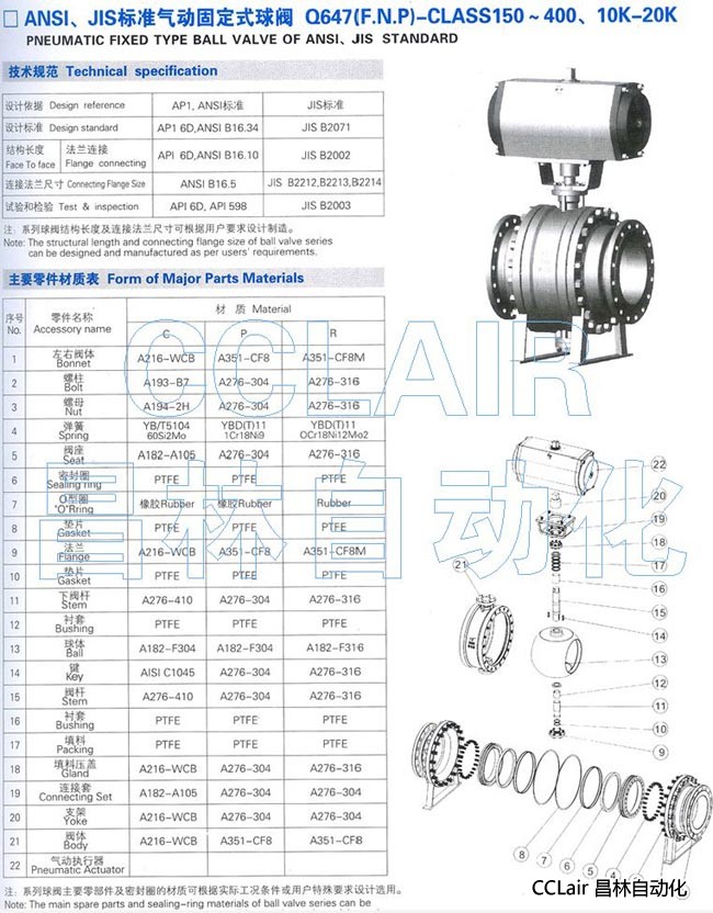 Q647F-150,Q647F-200,Q647F-250,Q647F-300,標(biāo)準(zhǔn)氣動(dòng)固定式球閥