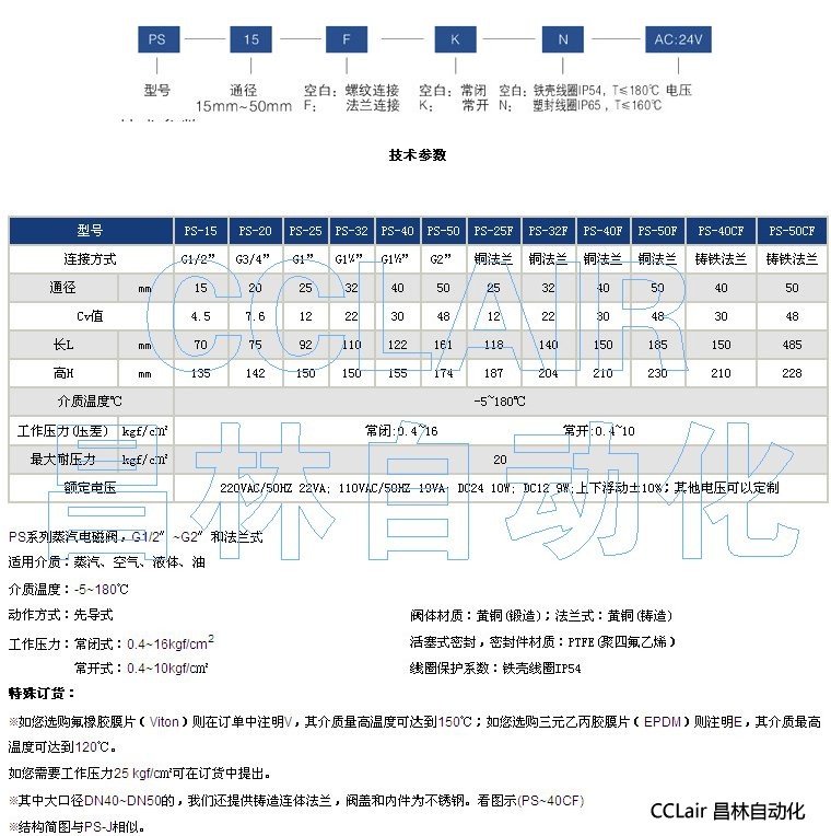 PS-15,PS-20,PS-25,PS-32,PS-40,PS-50,PS-25F,蒸汽電磁閥,G1/2〞~G2〞和法蘭式
