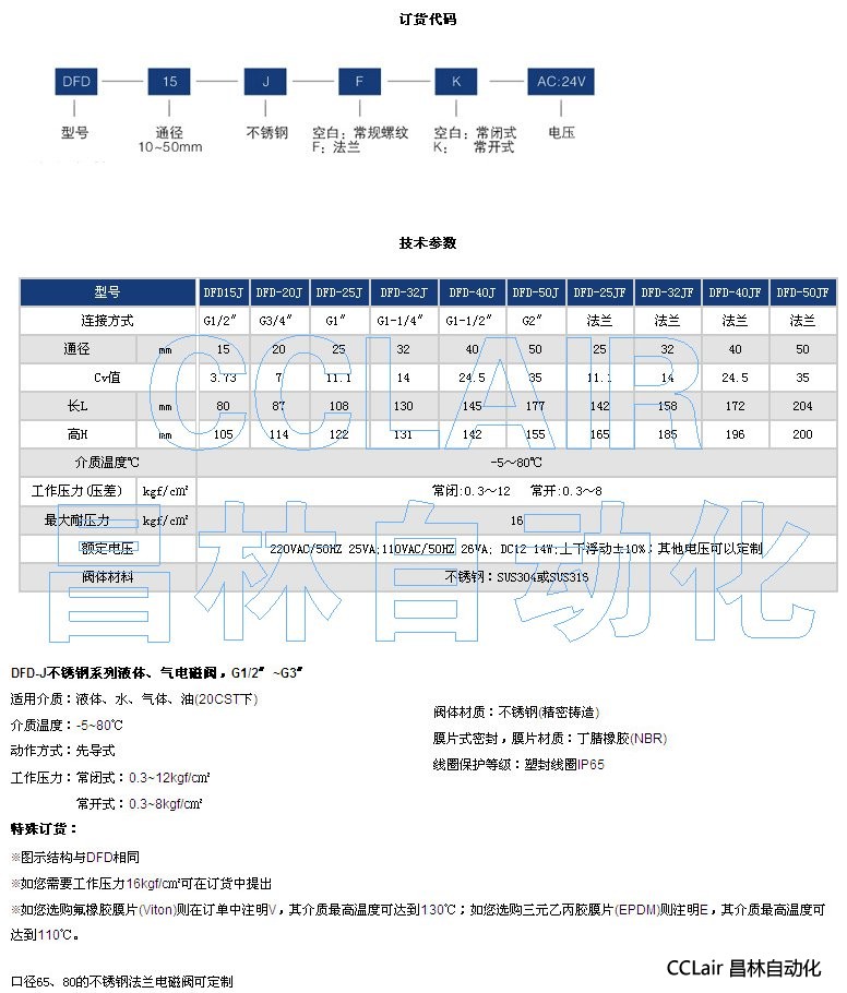 DFD-25JF,DFD-32JF,DFD-40JF,DFD-50JF,DFD-15J,不銹鋼液體、氣電磁閥G1/2〞~ G3〞