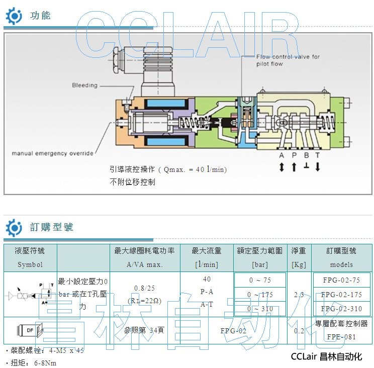 FPG-02-75,FPG-02-175,FPG-02-310,電液比例式減洩壓閥