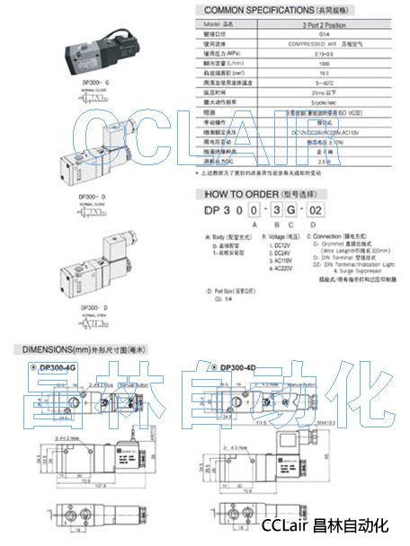 DP300-1G,DP300-2G,DP300-3G,DP300-4G,3通直動型電磁閥