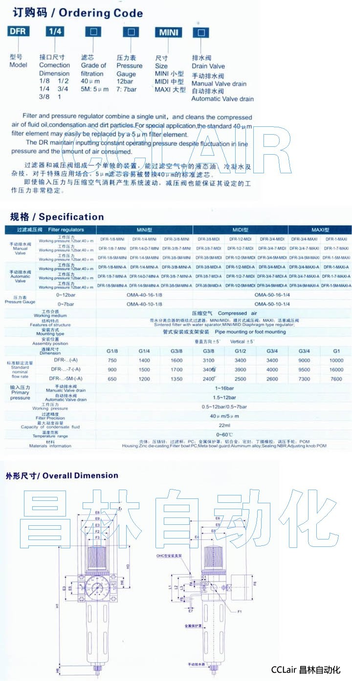 DFR-1/8-MINI,DFR-1/4-MINI,DFR-3/8-MINI, 過(guò)濾減壓閥