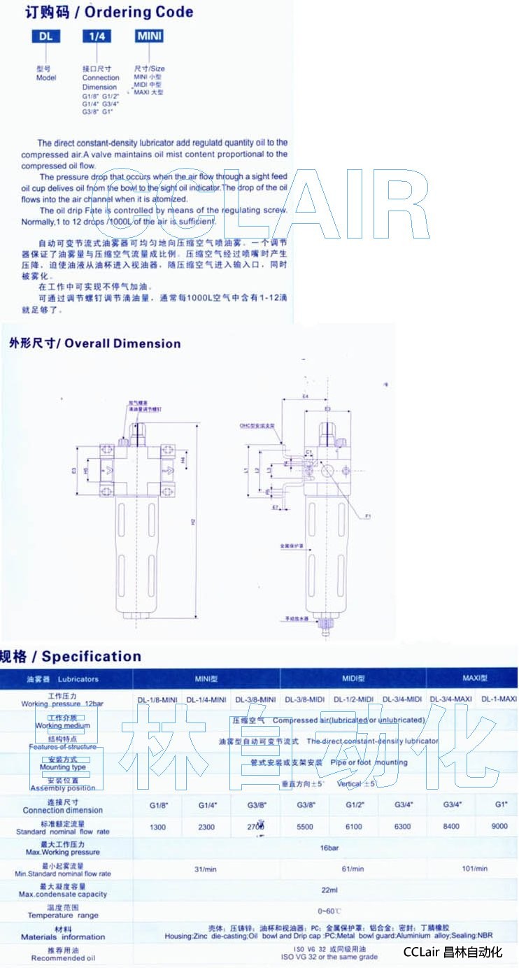 DL-1/8-MINI,DL-1/4-MINI,DL-3/8-MINI,油霧器