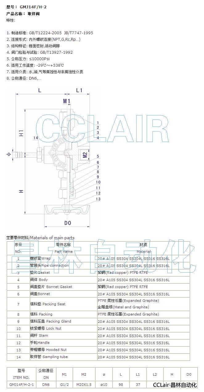 GMJ14F-2-1,GMJ14H-2-1,取樣閥
