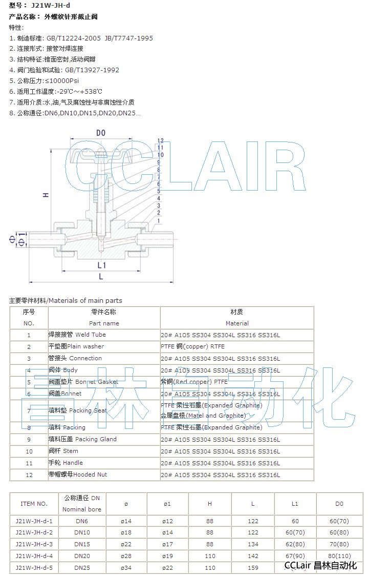 J21W-JH-d-1,J21W-JH-d-2,J21W-JH-d-3,外螺紋針形截止閥
