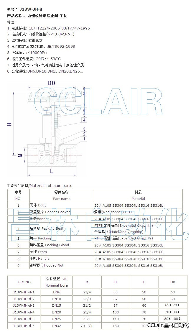 J13W-JH-d-1,J13W-JH-d-2,J13W-JH-d-3,內(nèi)螺紋針形截止閥-手輪