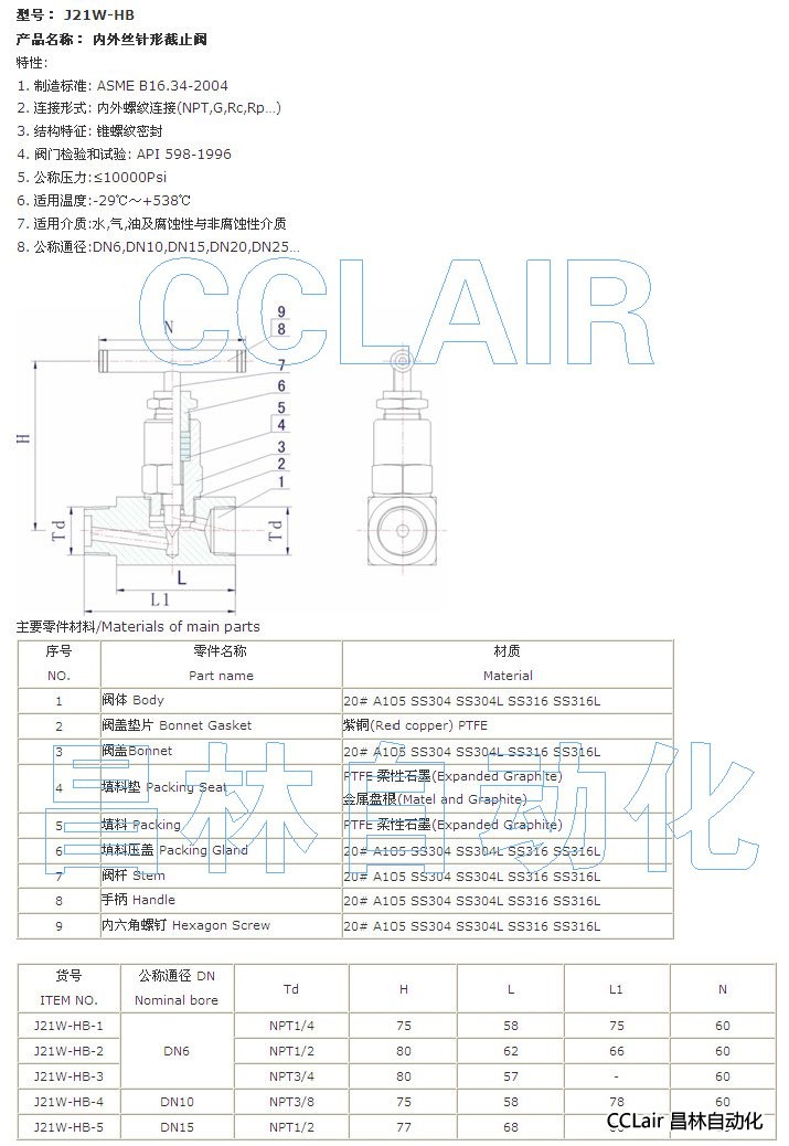 J21W-HB-1,J21W-HB-2,J21W-HB-3,J21W-HB-4,J21W-HB-5, 內(nèi)外絲針形截止閥 |