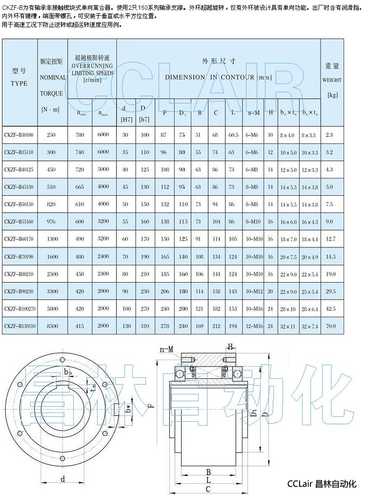 CKZF-B30100,CKZF-B35110,CKZF-B40125,單向離合器