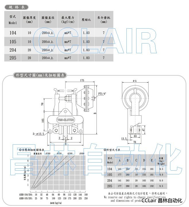 ASBH-104,ASBH-105,ASBH-204,ASBH-205,空壓碟式制動器