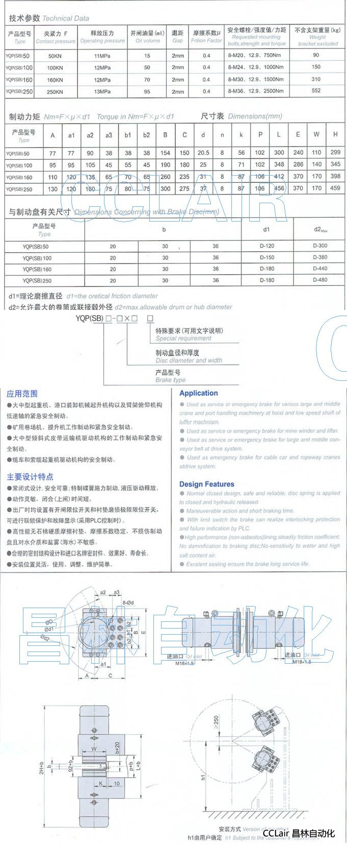 YQP(SB)50,YQP(SB)100,YQP(SB)160,YQP(SB)250,液壓鉗盤式制動(dòng)器